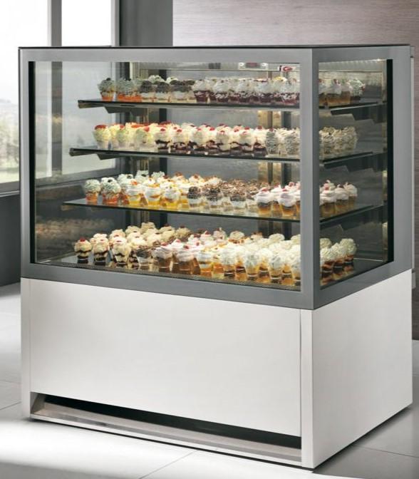 VETRINA PASTICCERIA MAXIM DISPONIBILE CON SERVIZIO REFRIGERATO O CALDO CON PIANO ESPOSITIVO E TRE FILE DI RIPIANI TUTTI CON PLAFONIERA CON ILLUMINAZIONE LED